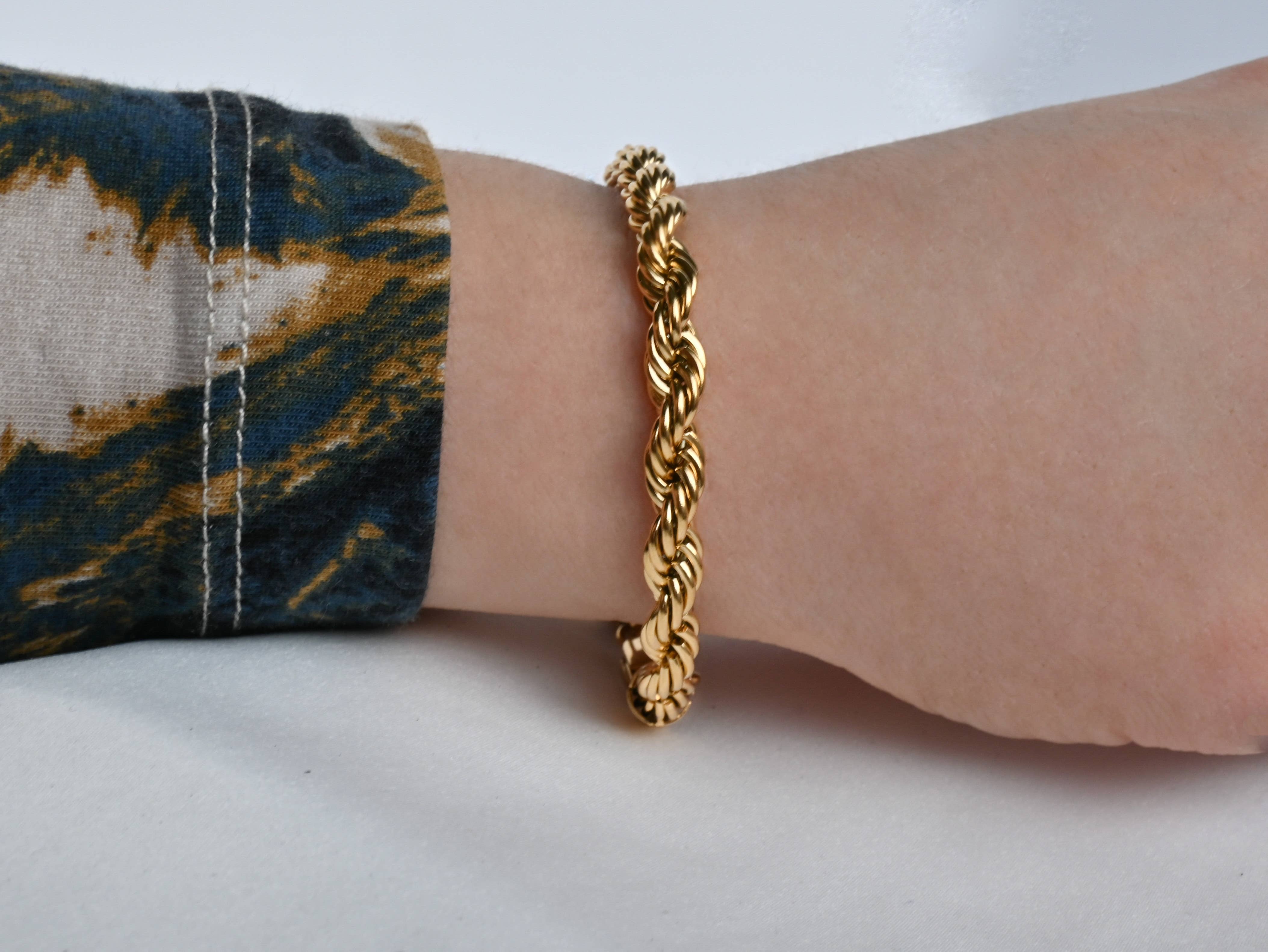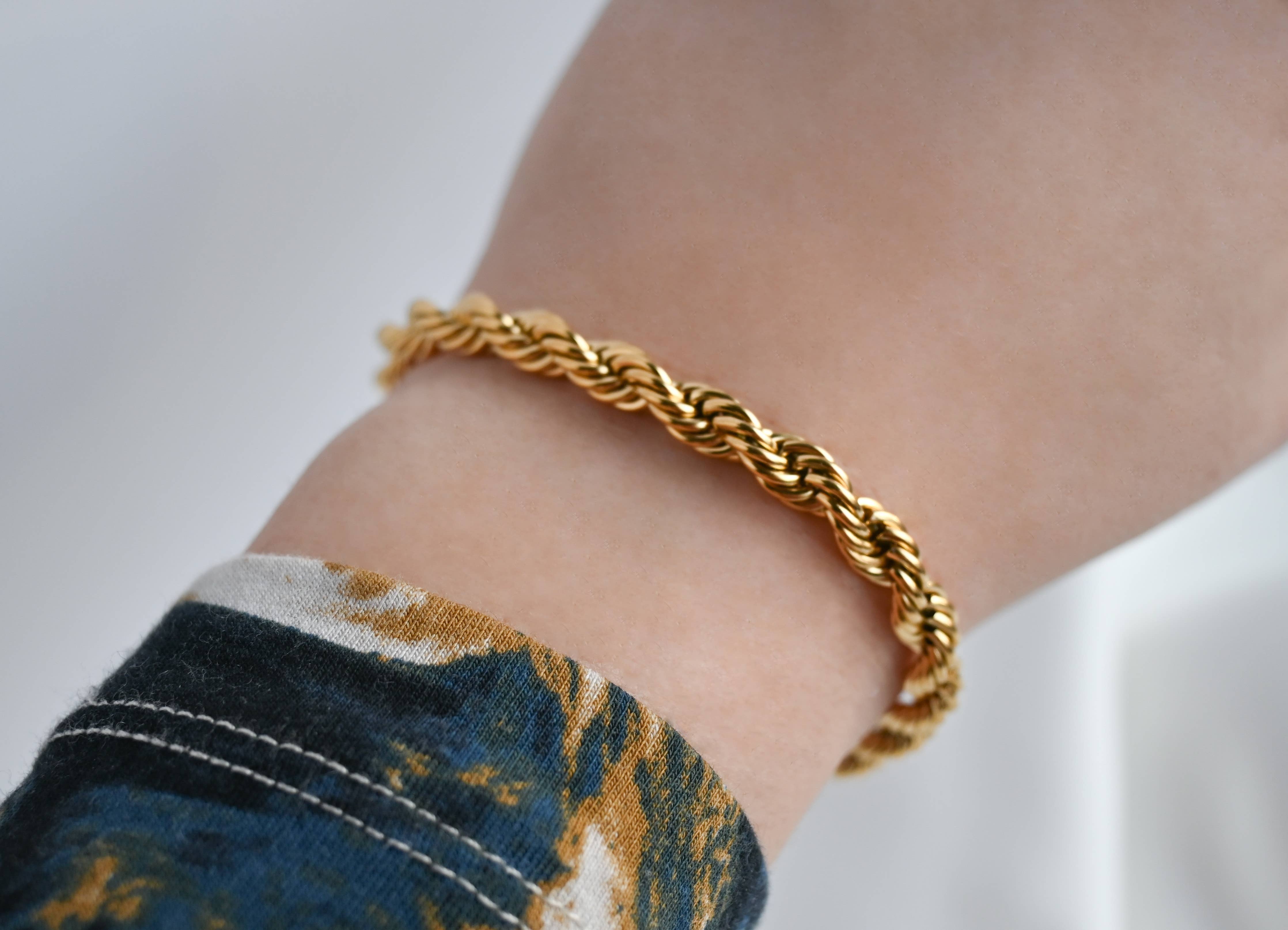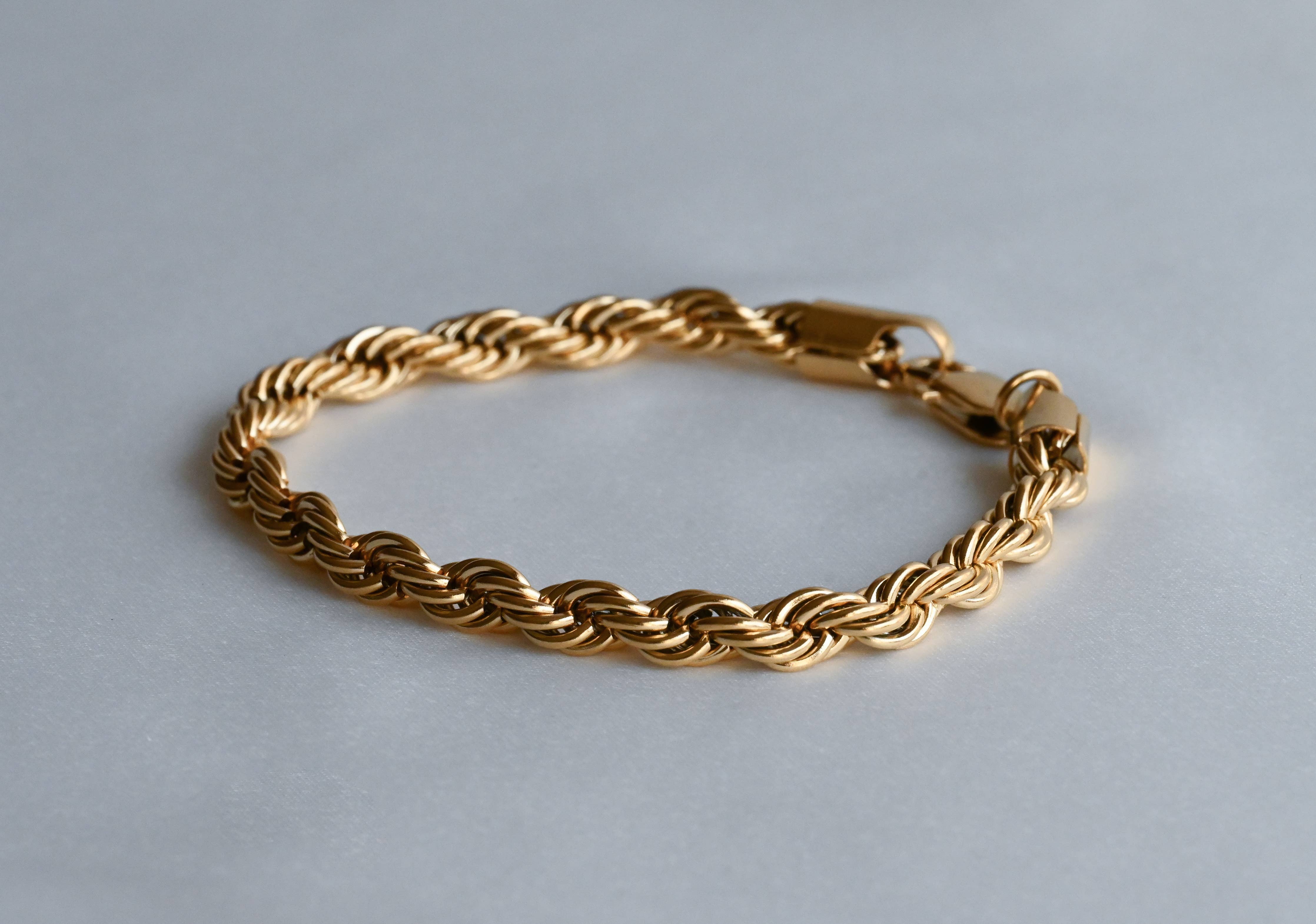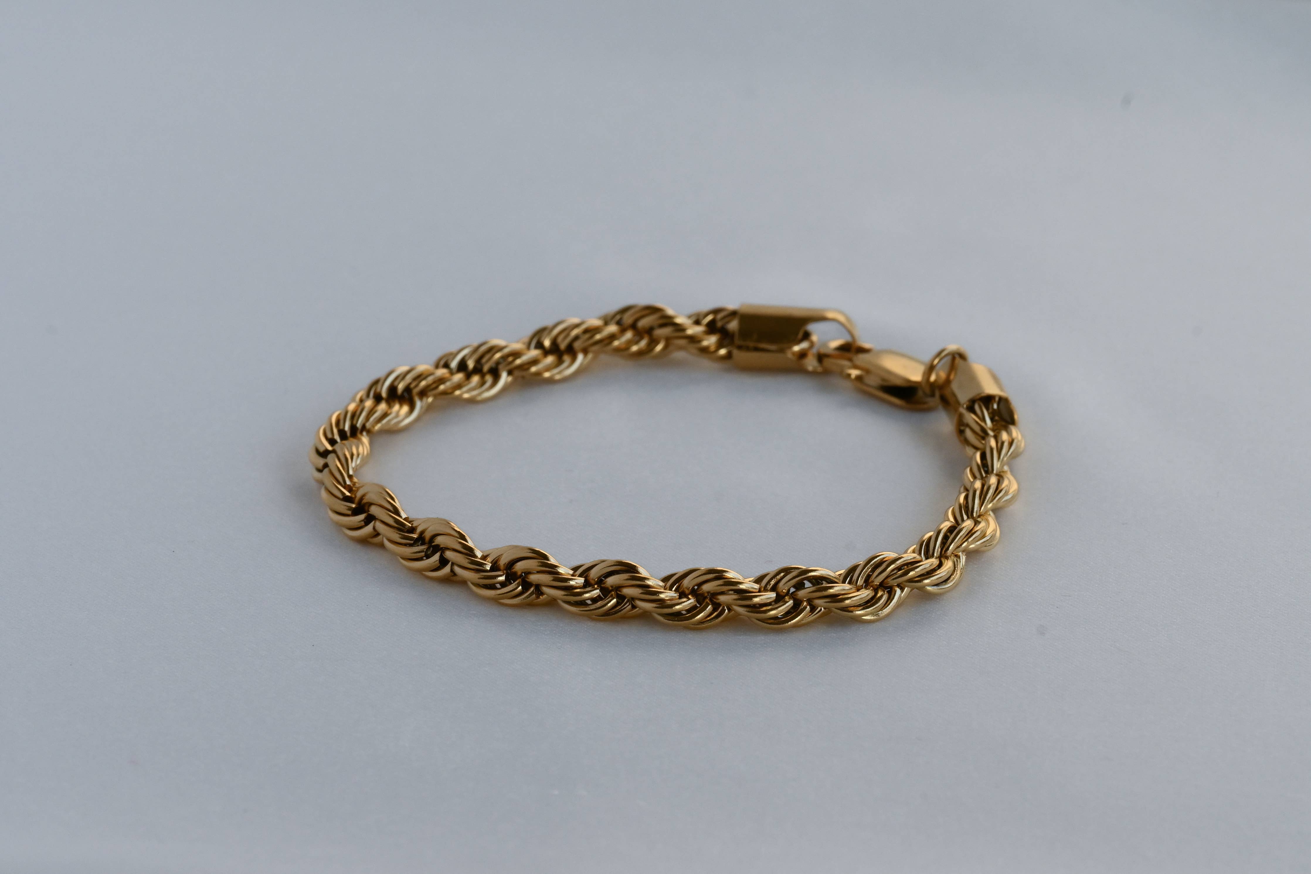 Bold 18k Gold Bracelets - Waterproof Thick Chain Bracelets: Rope