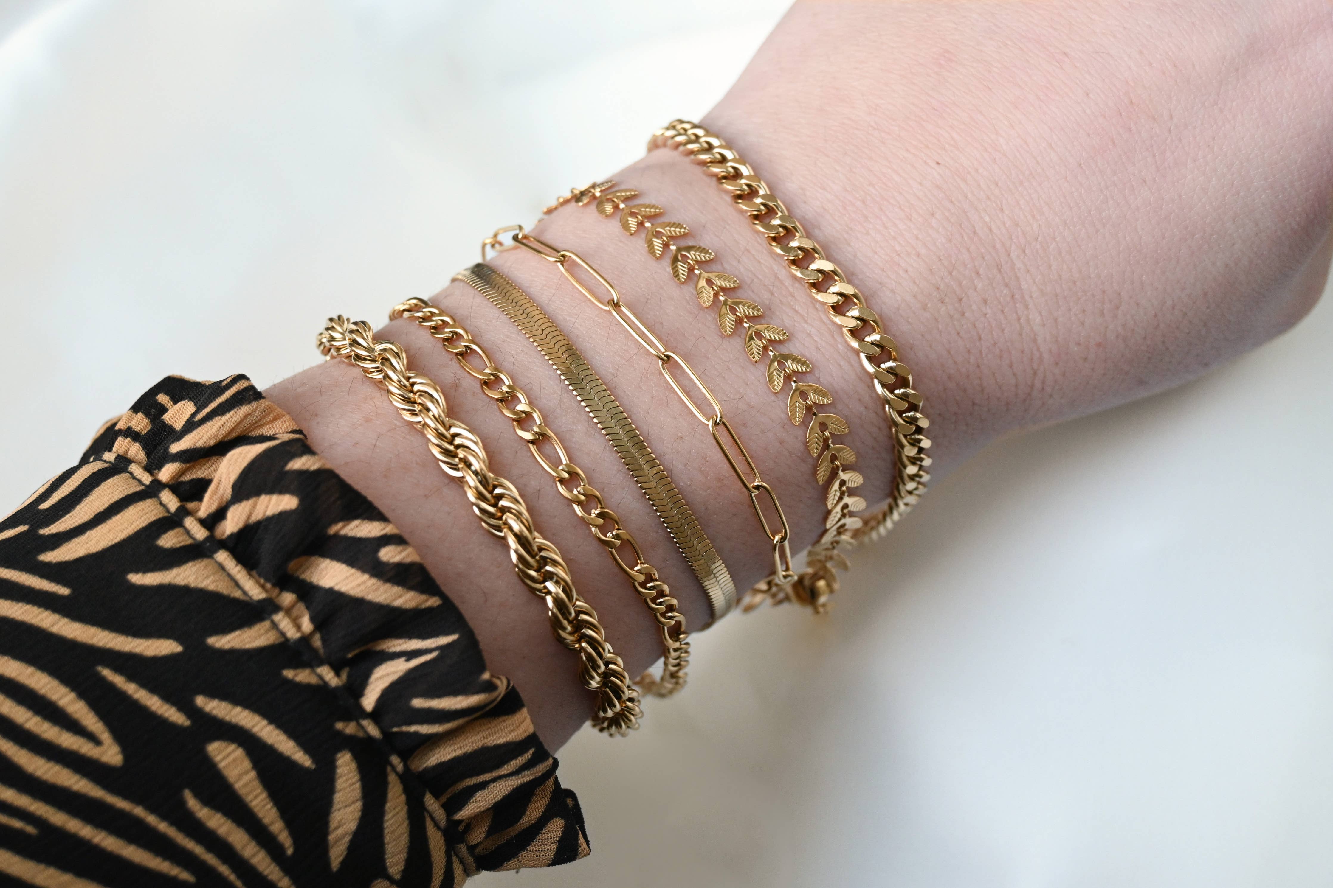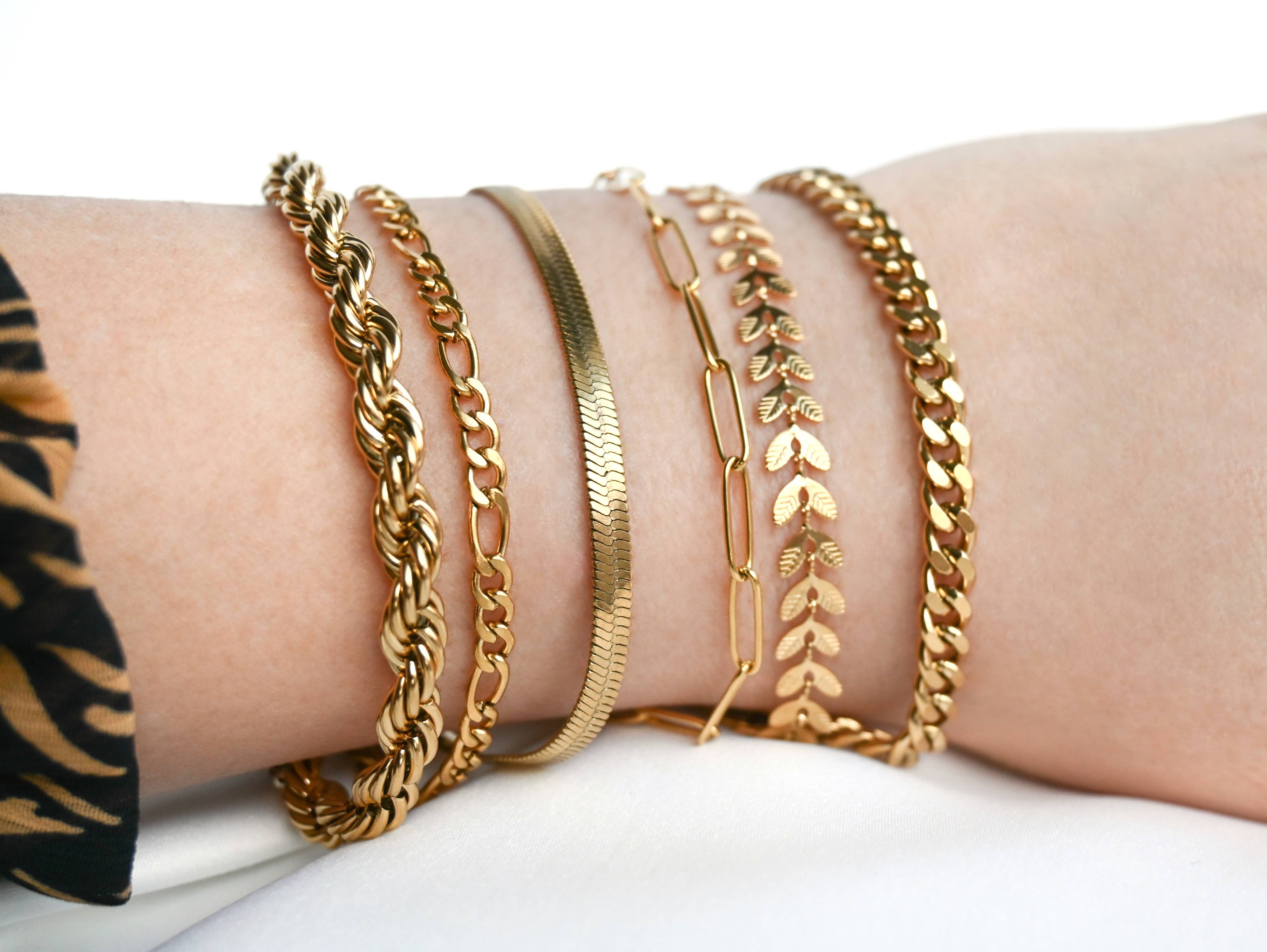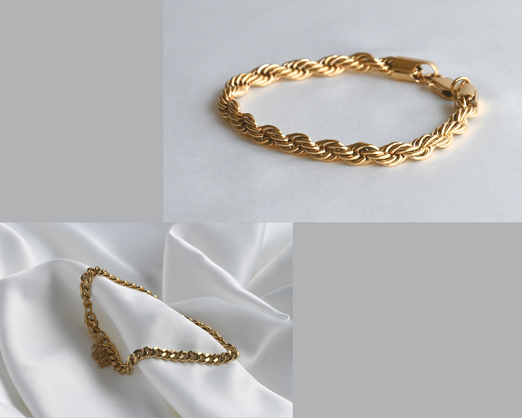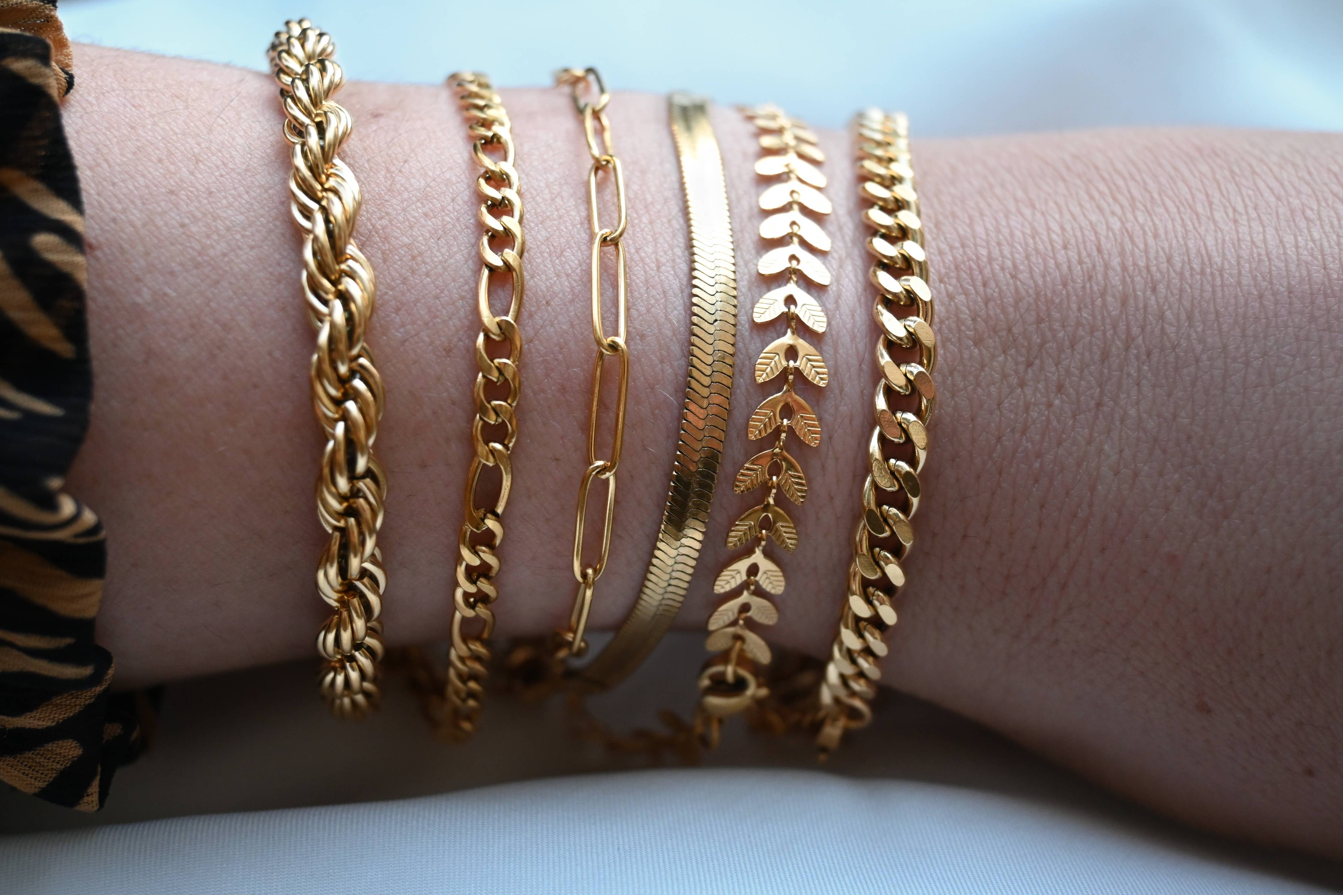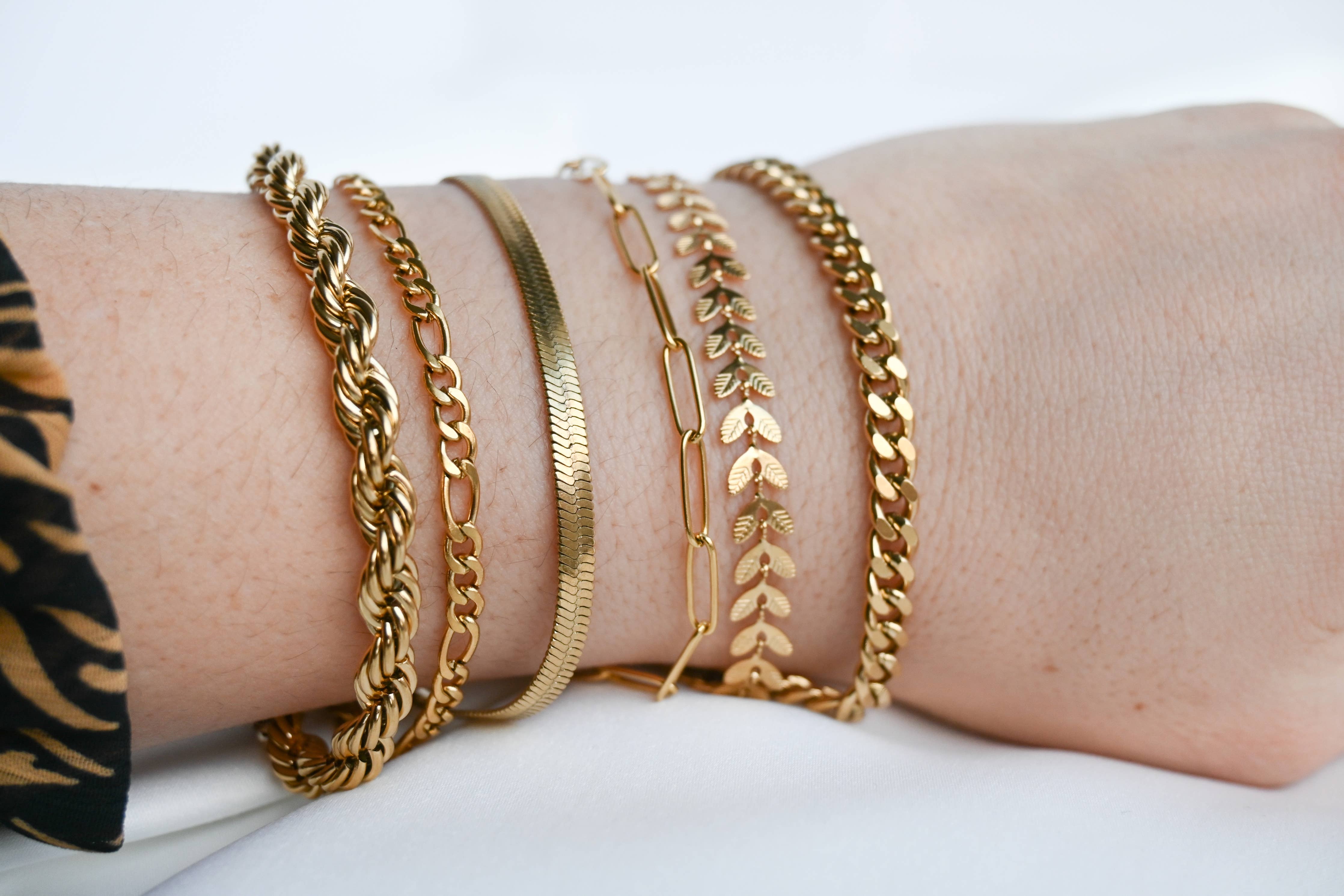 Bold 18k Gold Bracelets - Waterproof Thick Chain Bracelets: Rope