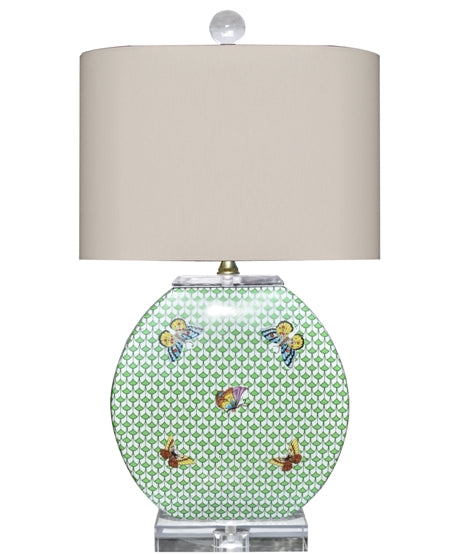 PORCELAIN GREEN FISH SCALE MOON VASE LAMP