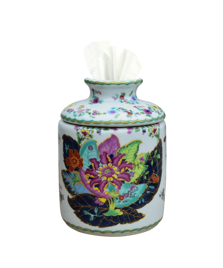 Scrolling Chrysanthemum Green and White Porcelain Cachepot