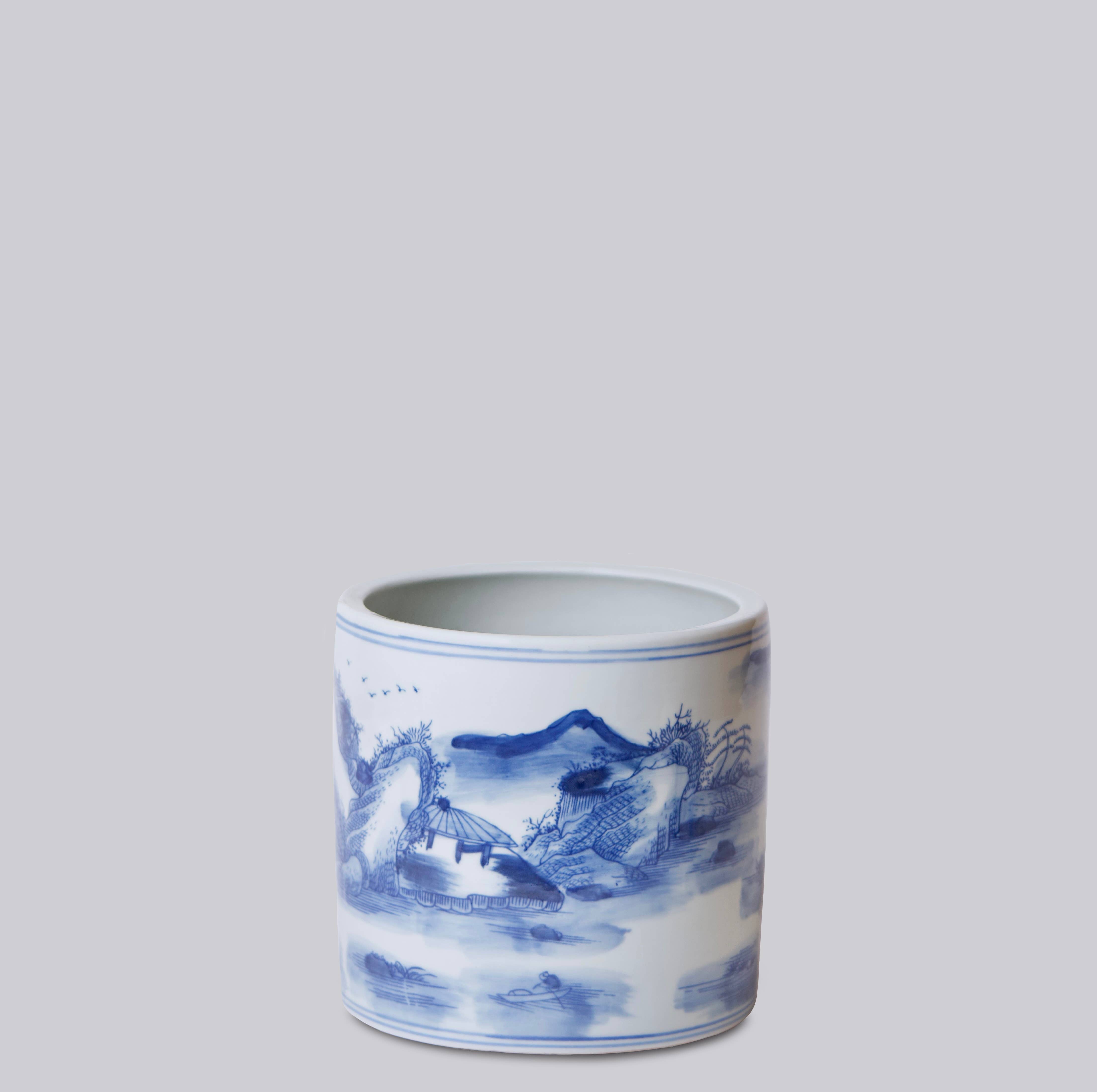 Blue and White Porcelain Mini Landscape Round Storage Jar