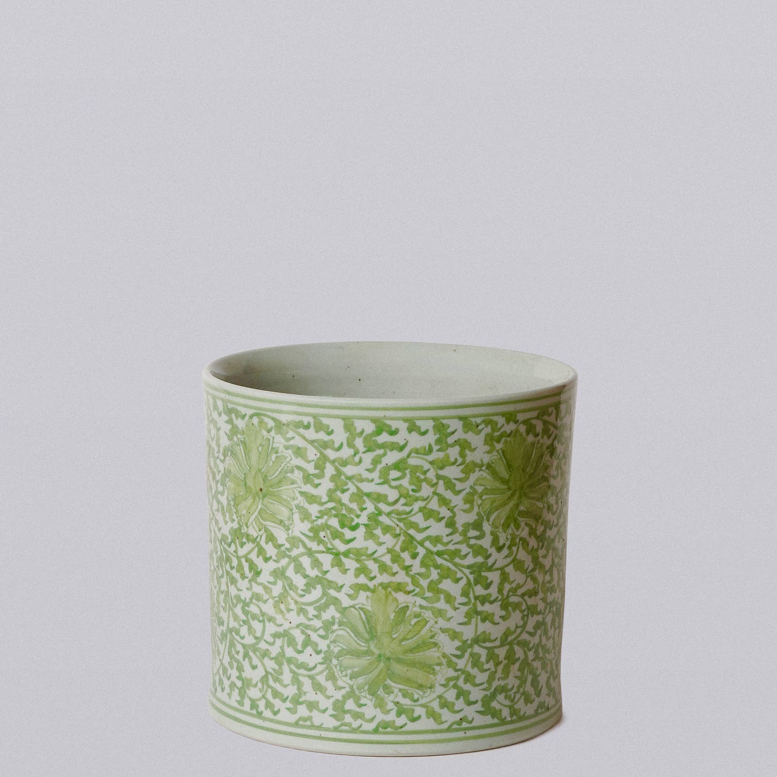 Scrolling Chrysanthemum Green and White Porcelain Cachepot