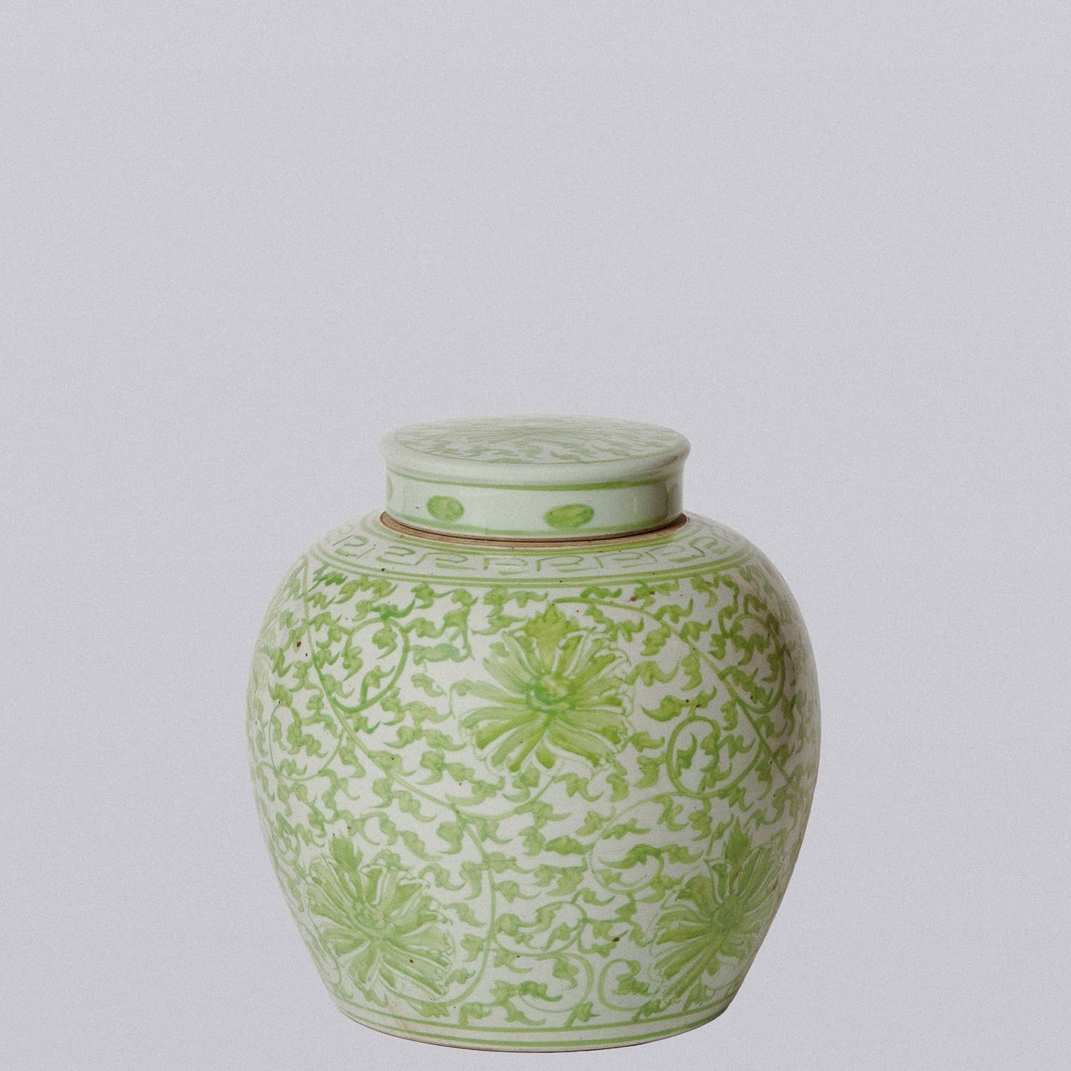 Scrolling Chrysanthemum Green and White Porcelain Jar