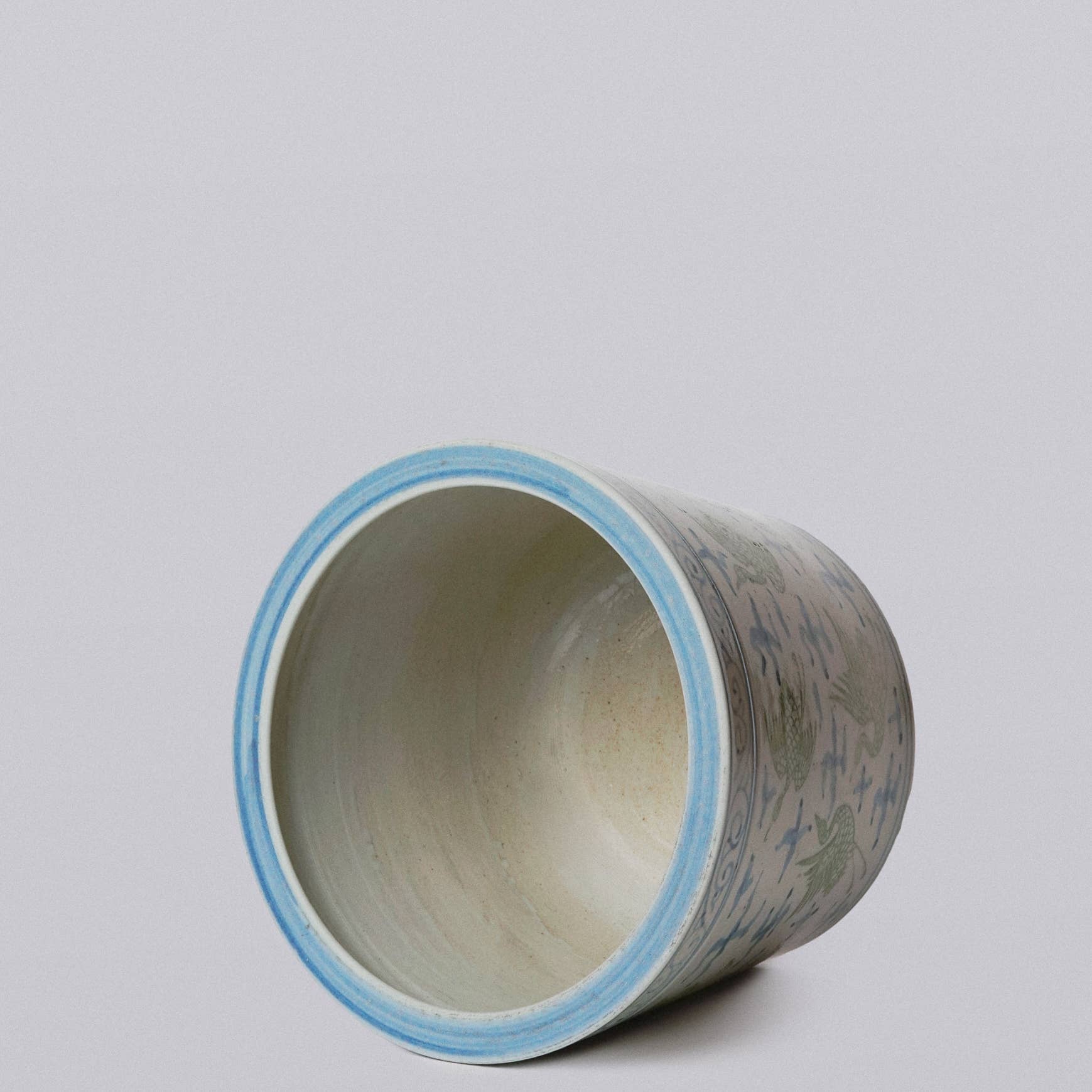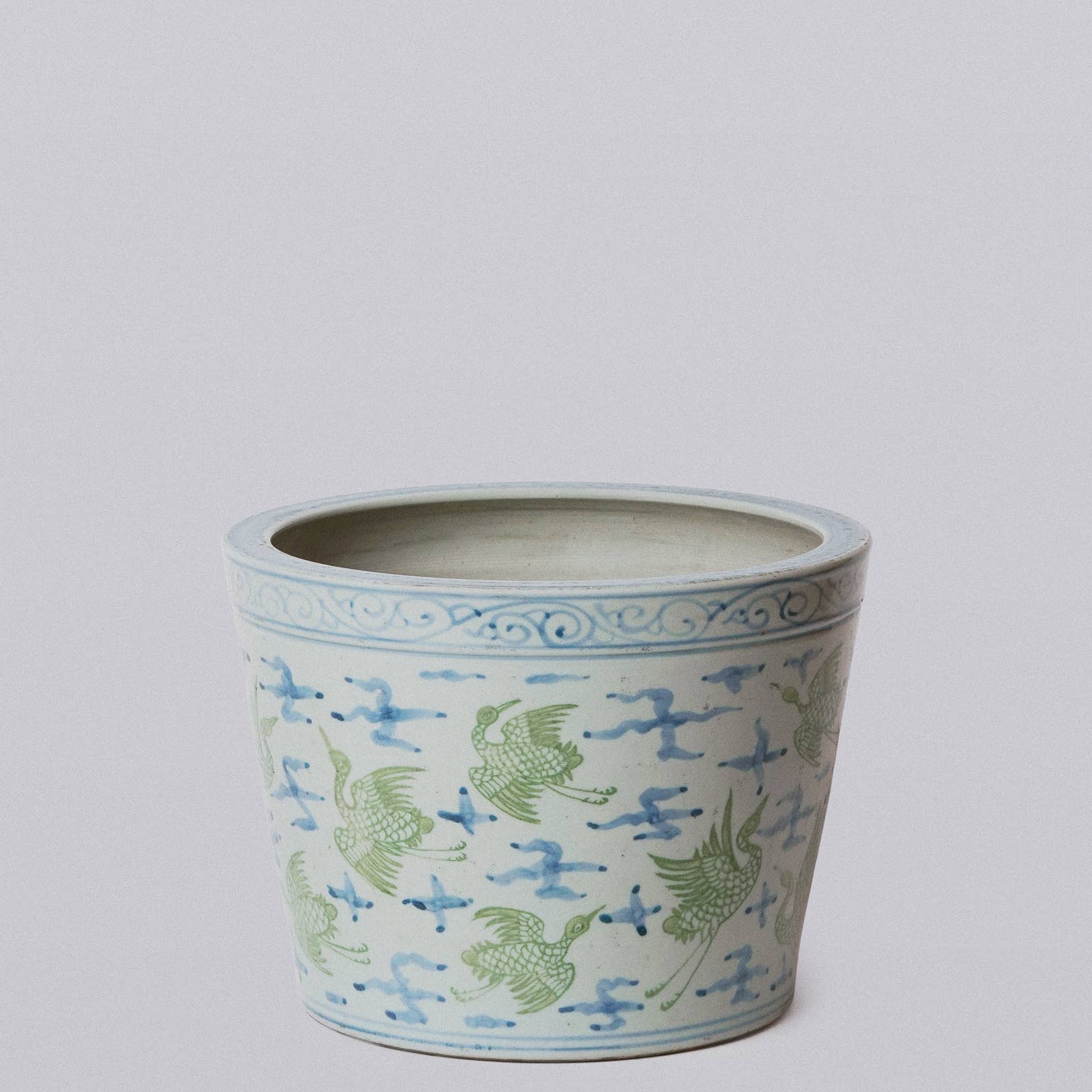 Cranes and Clouds Green and Blue Porcelain Cachepot