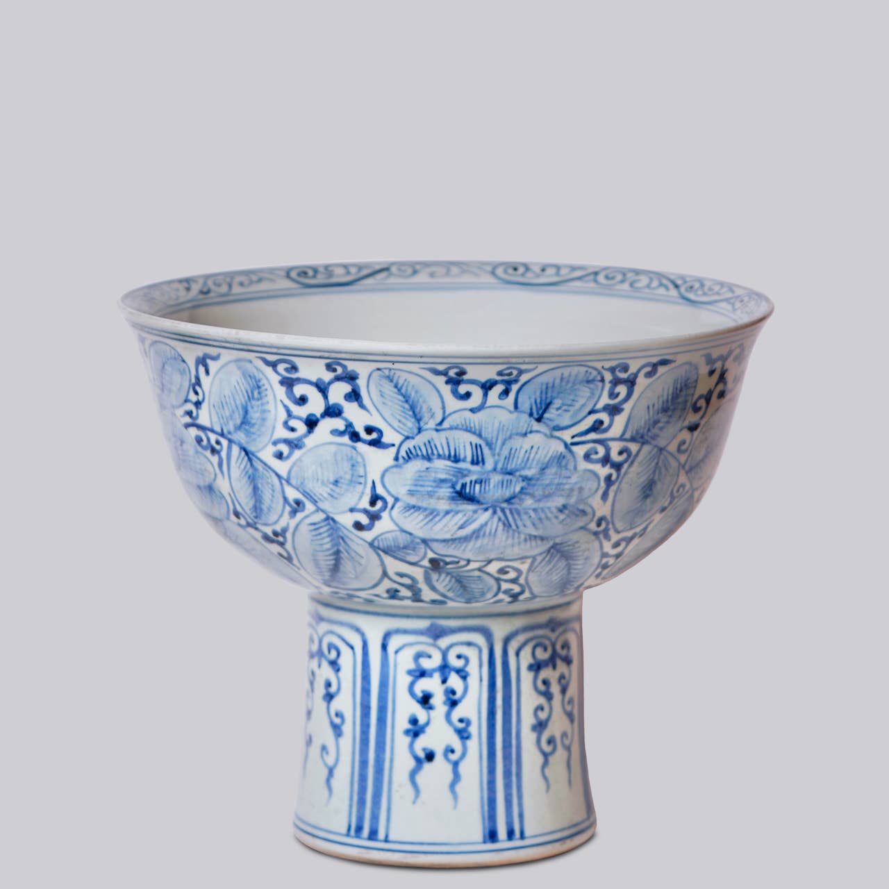 Blue and White Porcelain Scrolling Lotus Temple Jar