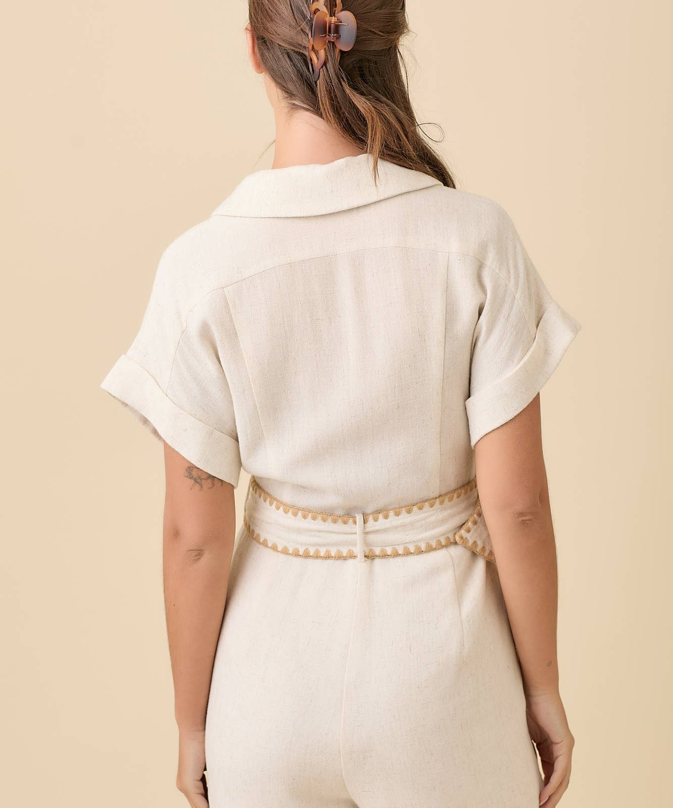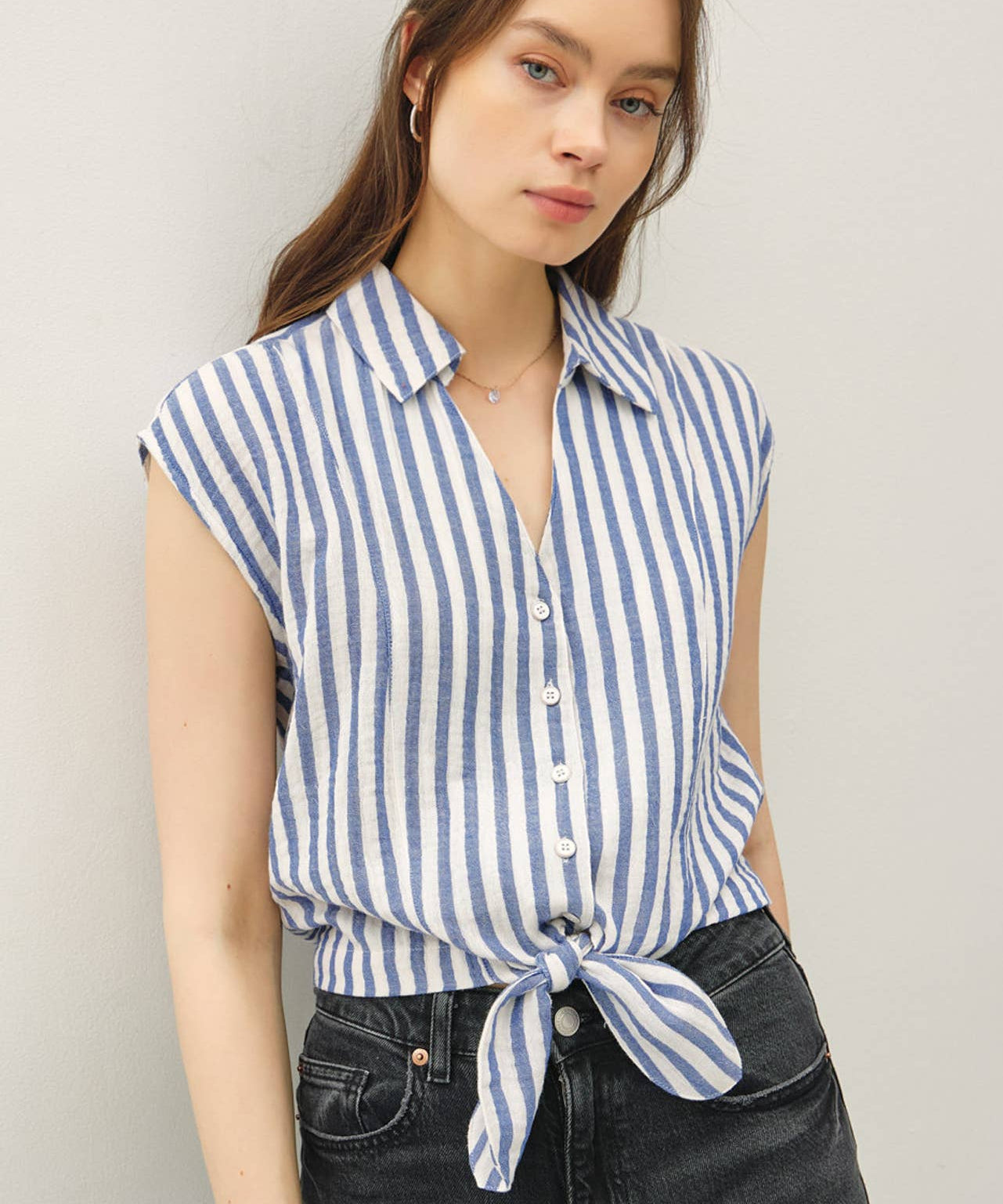 STRIPE SHORT SLEEVE FRONT TIE TOP