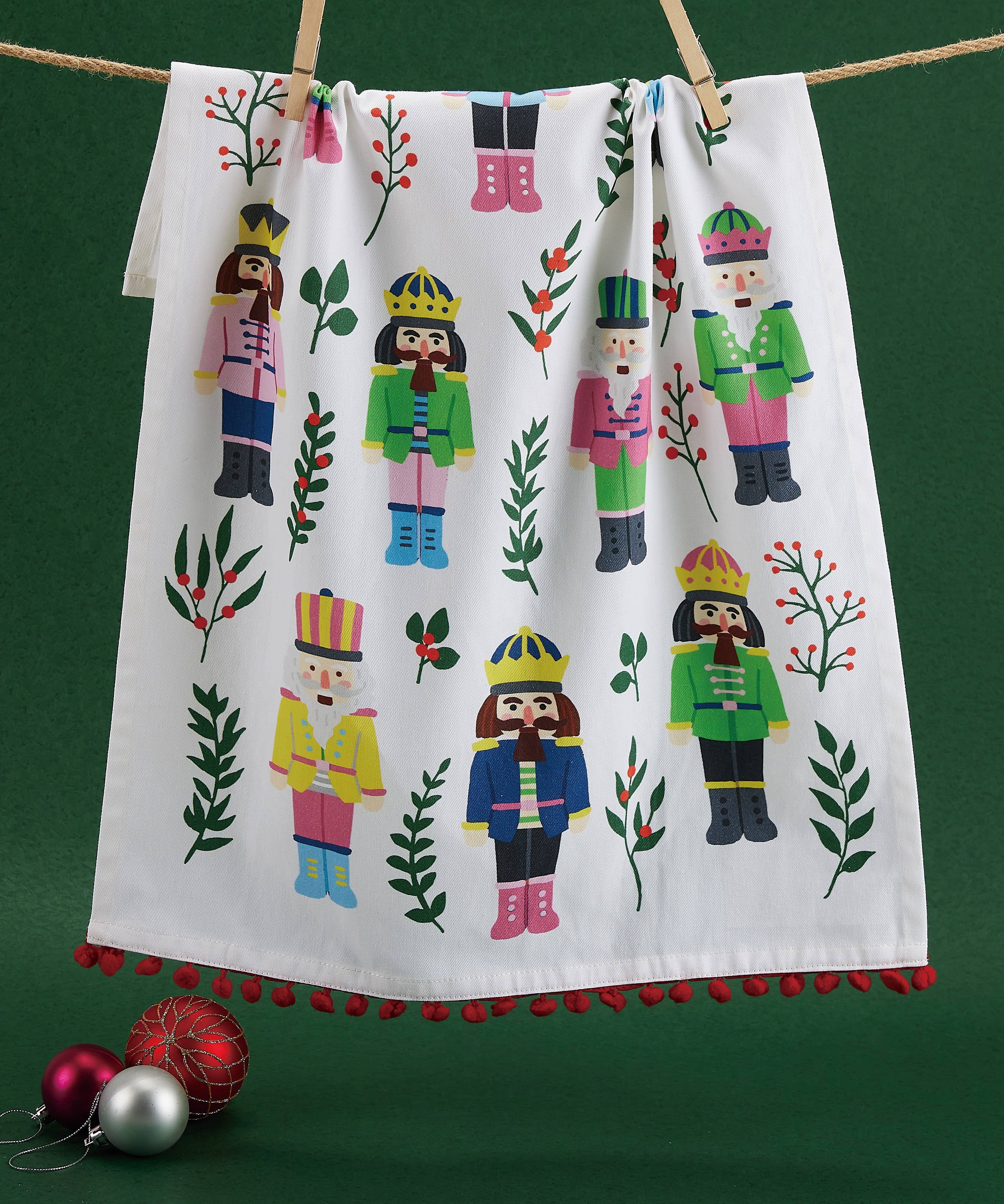 Vintage Nutcrackers W/Pom Pom Printed Towel