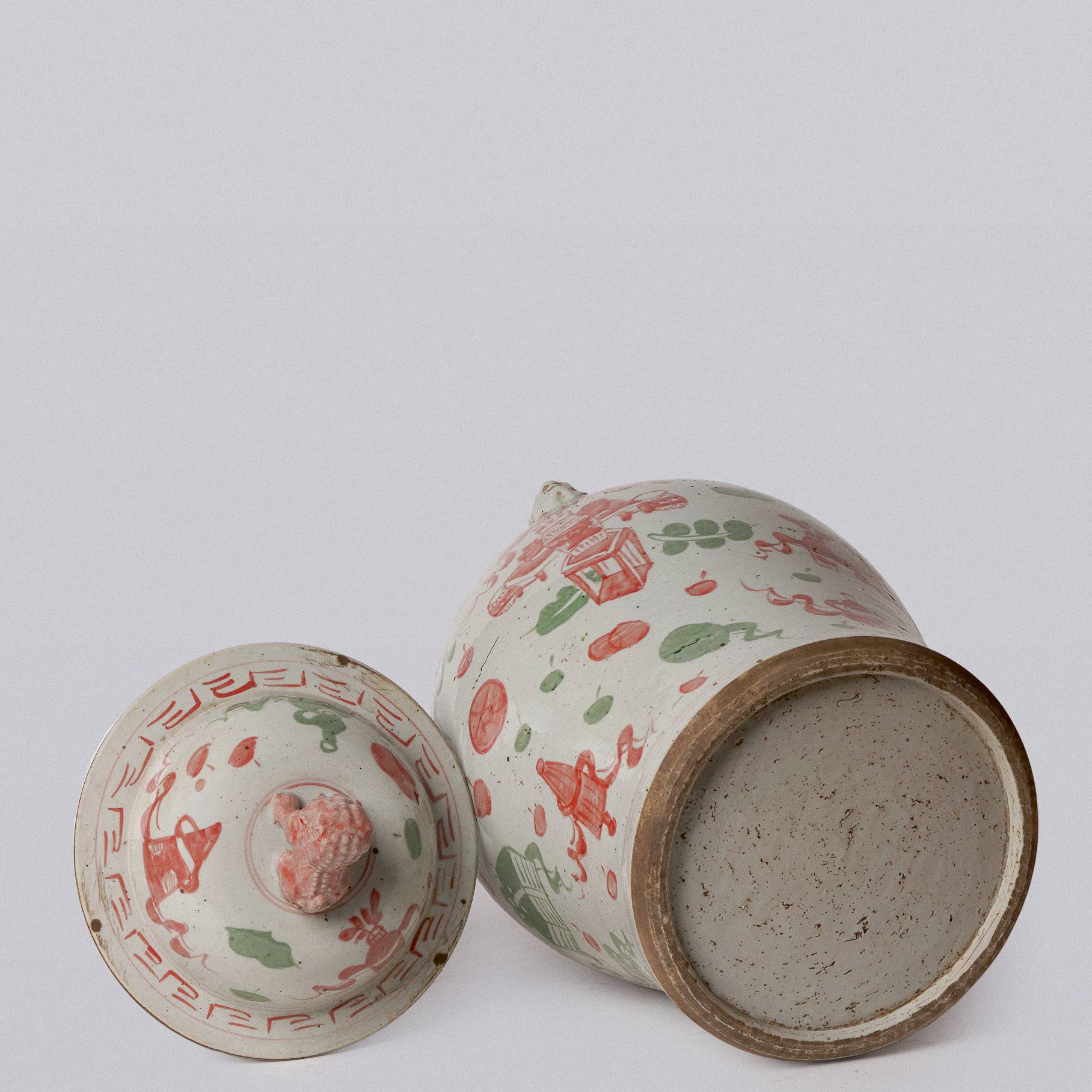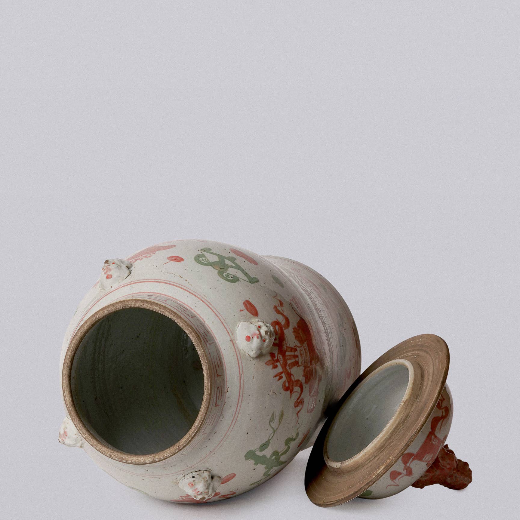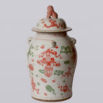 Extra Large Pink & Green Porcelain Treasures Temple Jar