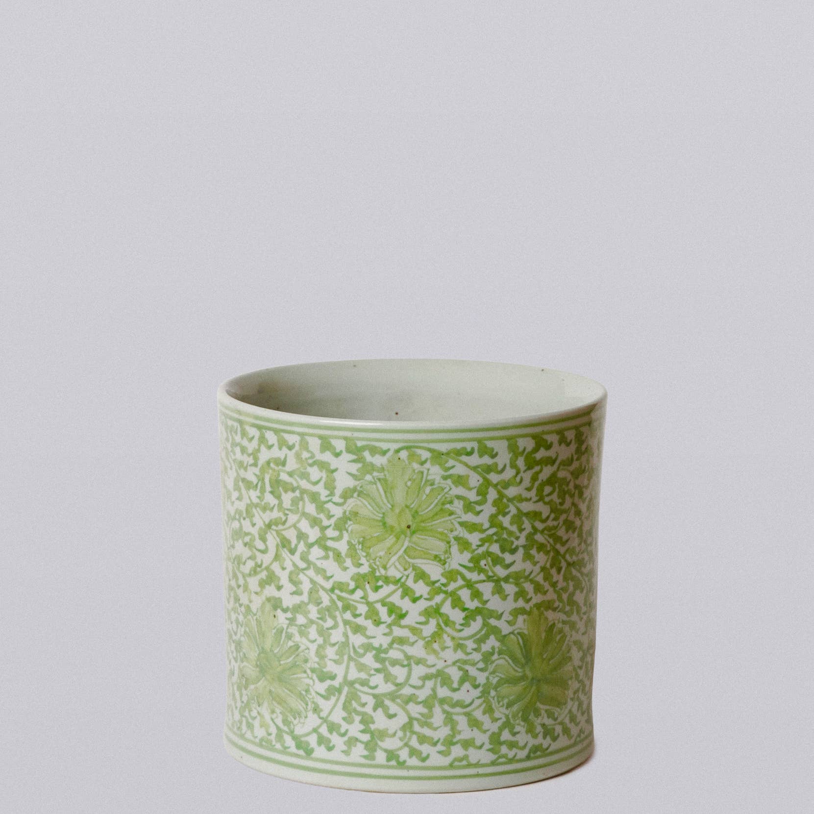 Scrolling Chrysanthemum Green and White Porcelain Cachepot