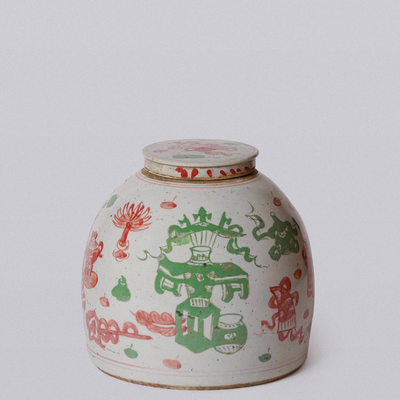 Pink and Green Porcelain Rustic Ancient Treasures Lidded Jar