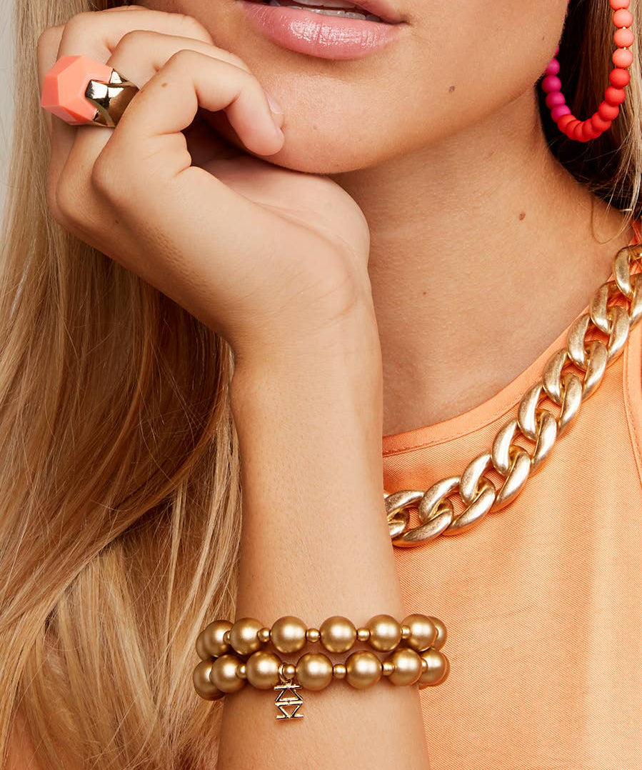 Beaded Metallic Stretch Bracelet Set