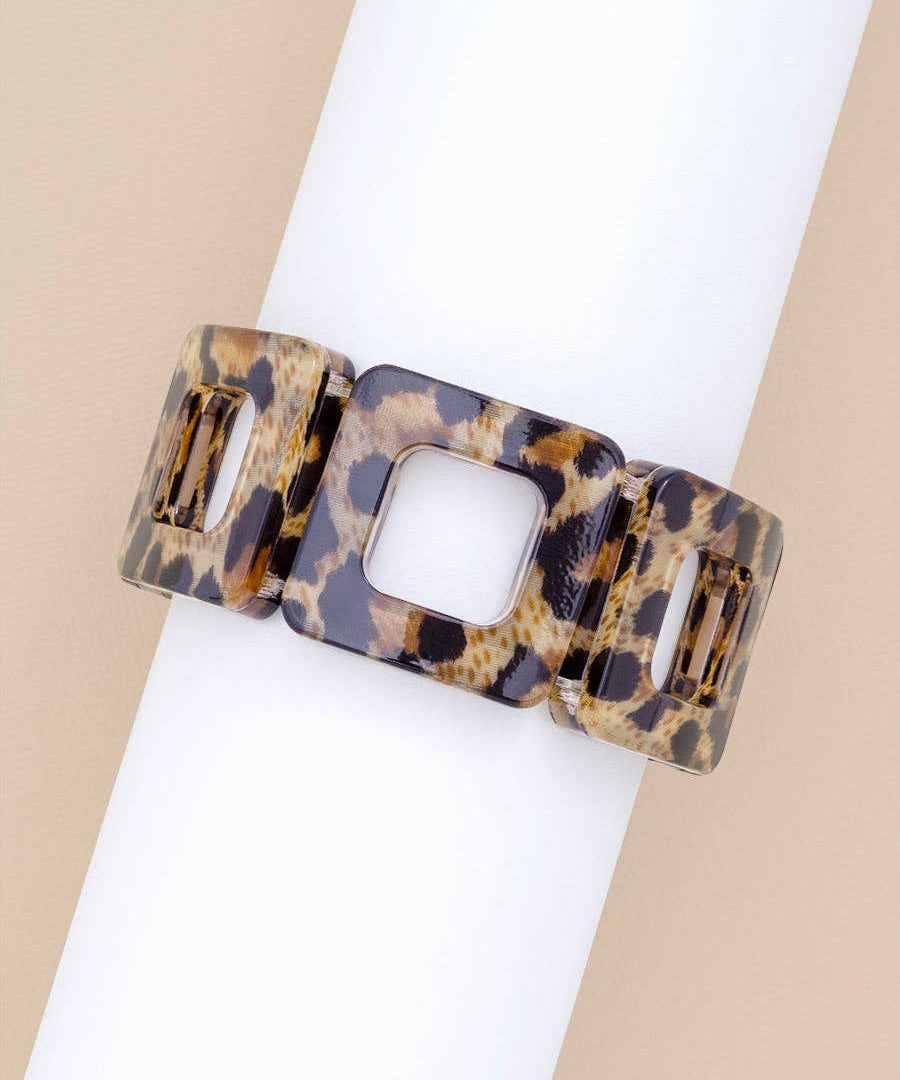 Resin Leopard Stretch Block Bracelet