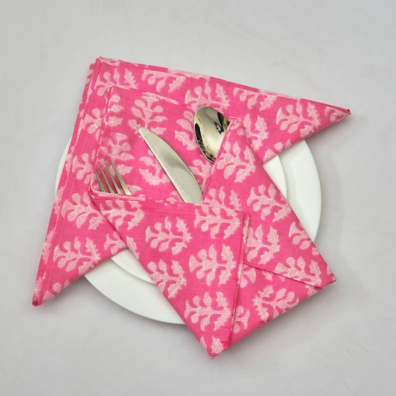 Watermelon and Lemonade Pink Indian Printed Cotton Napkins S/4